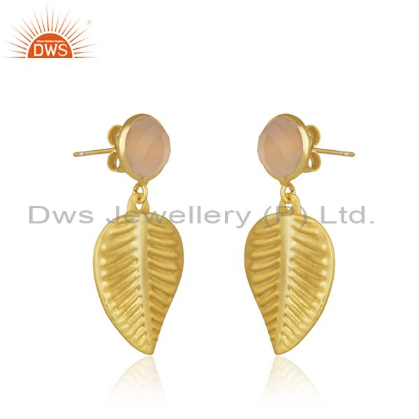 Rose Chalcedony Gemstone Designer Gold Plated Fashion Earrings Jewelry