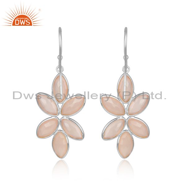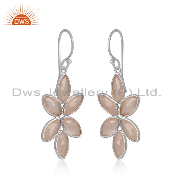 Rose Chalcedony Gemstone Floral Designer Fine Silver Earrings