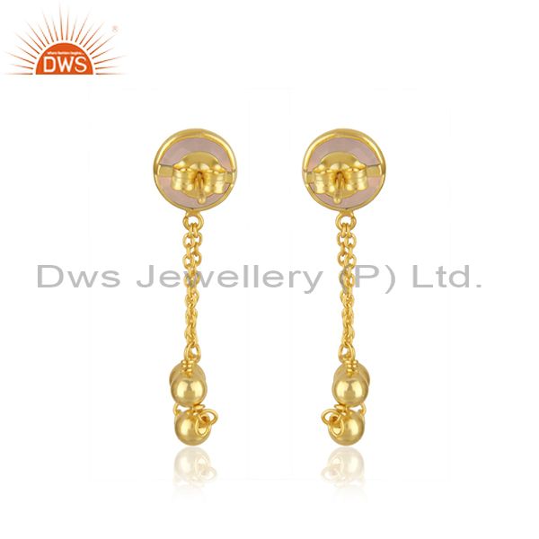 Rose Chalcedony Gemstone Gold Plated 925 Silver Chain Earring Jewelry
