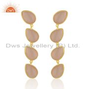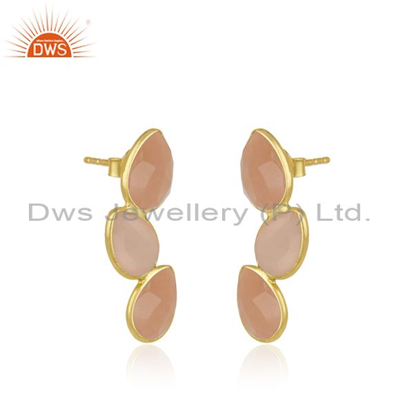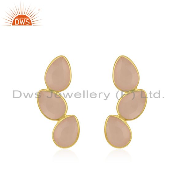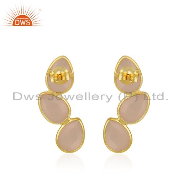 Rose Chalcedony Gemstone Gold Plated 925 Silver Stud Earring Wholesaler
