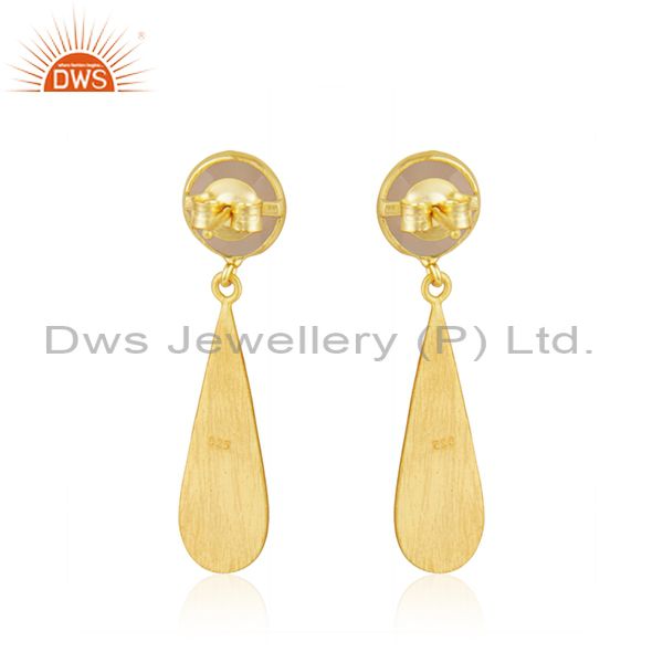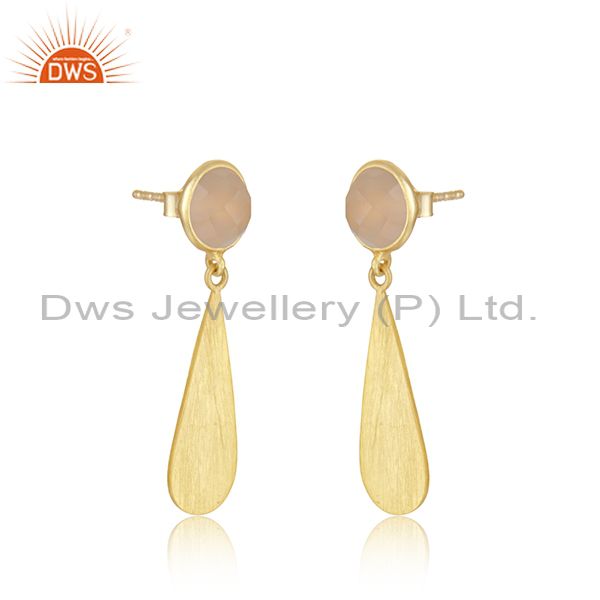 Rose Chalcedony Gemstone Gold Plated Silver Earring Jewelry Manufacturer