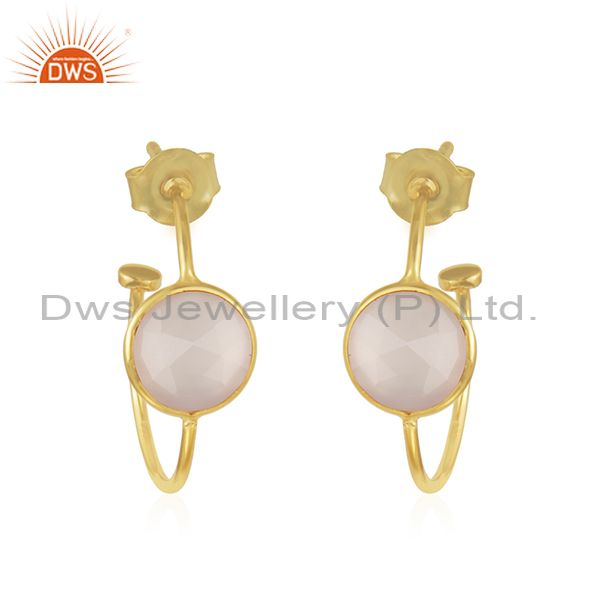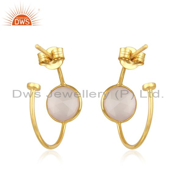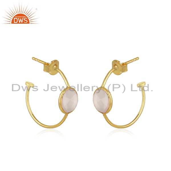 Rose Chalcedony Gemstone Gold Plated Silver Hoop Earrings Jewelry