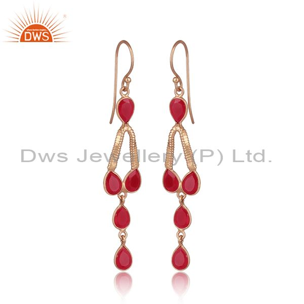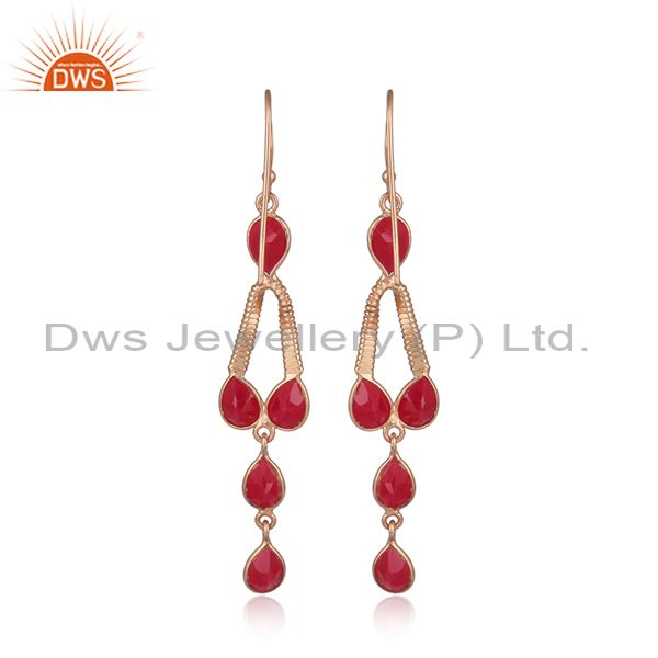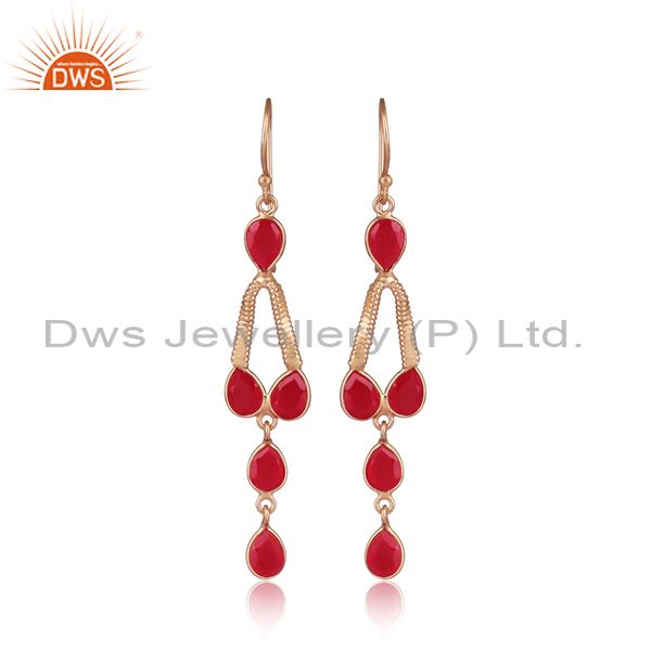 Rose Gold On 925 Silver Designer Pink Chalcedony Earrings