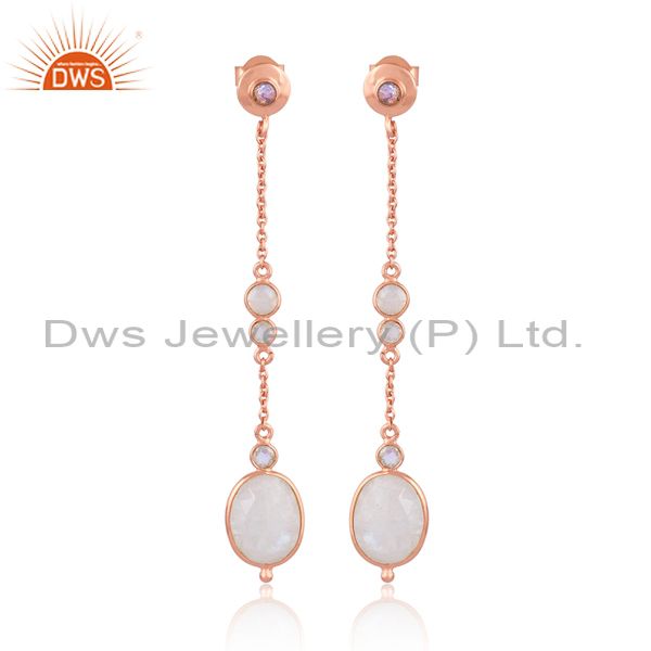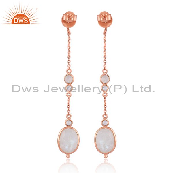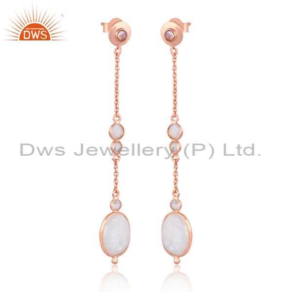 Rose Gold On Silver Rainbow Moon Stone Set Long Earrings
