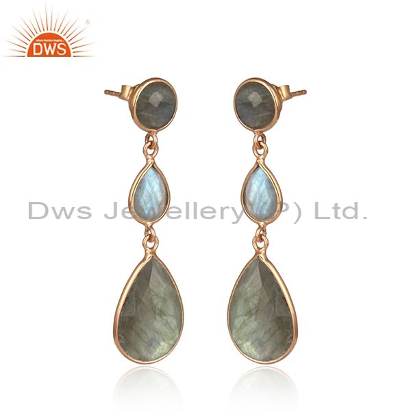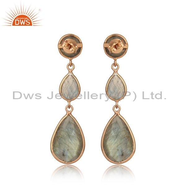 Rose Gold Plated 925 Silver Labradorite Gemstone Earring Wholesale Jewelry