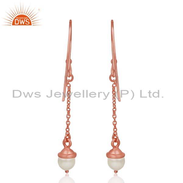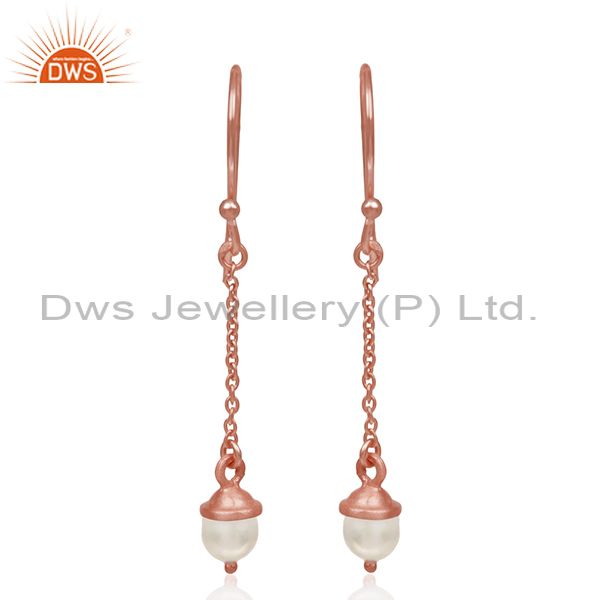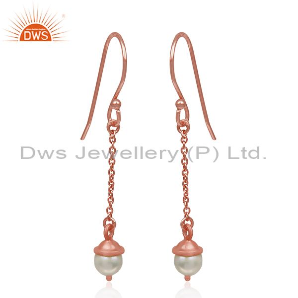 Rose Gold Plated 925 Silver Natural Pearl Designer Earrings Manufacturer India
