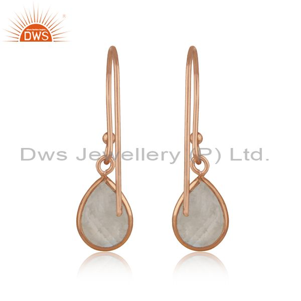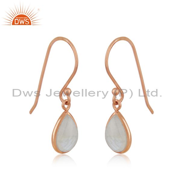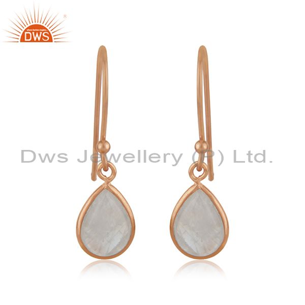Rose Gold Plated 925 Silver Rainbow Moonstone Gemstone Earrings Jewelry