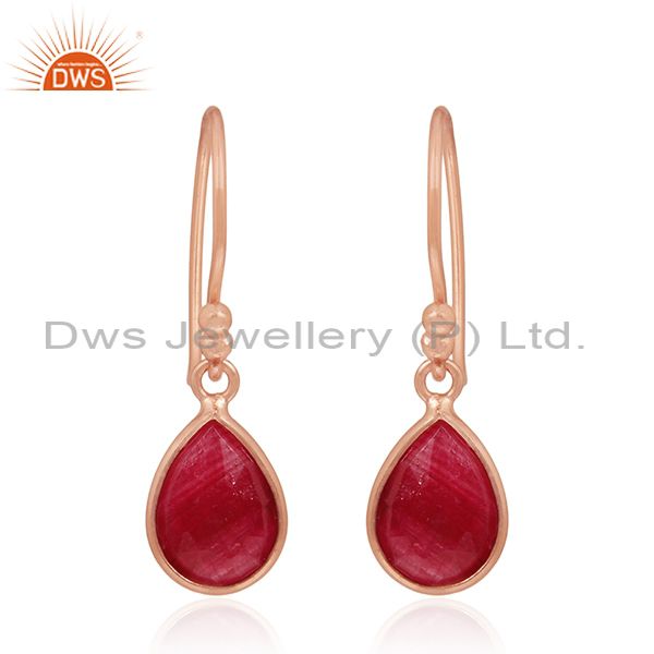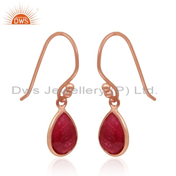 Rose Gold Plated 925 Silver Ruby Corundum Gemstone Drop Earrings Manufacturers