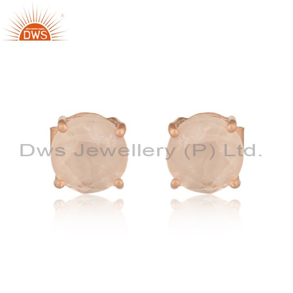 Rose Gold Plated 925 Sterling Silver Rose Quartz Round Stud Earrings Wholesale