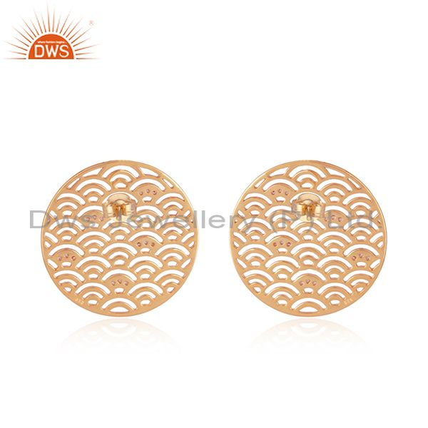 Rose Gold Plated Filigree Designer Silve Round Stud CZ Earring Jewelry