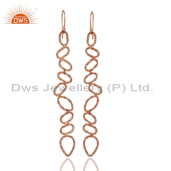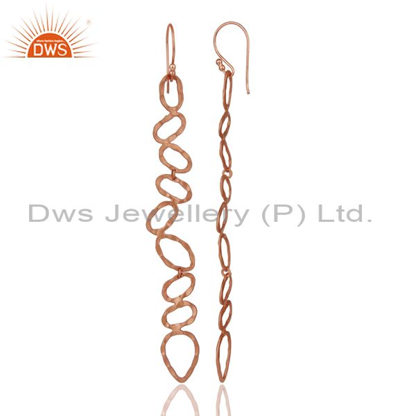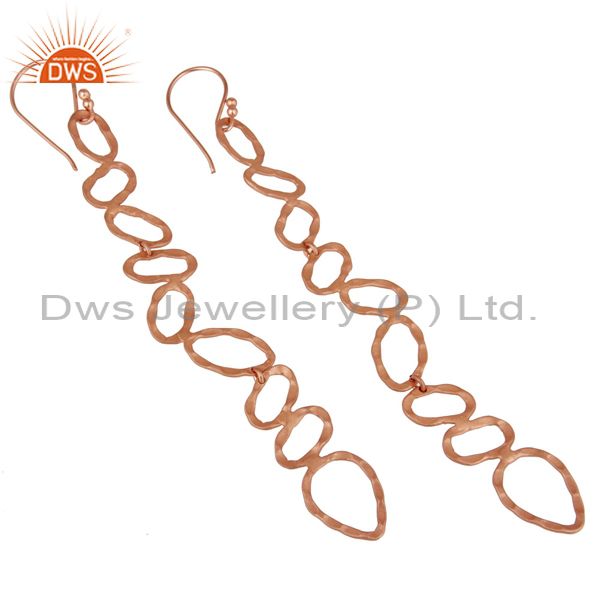 Rose Gold Plated Solid Sterling Silver Hammered Dangle Earrings
