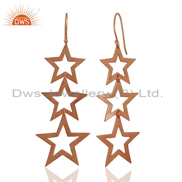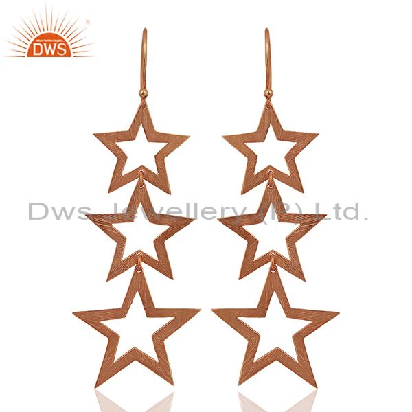 Rose Gold Plated Star Charm Sterling Plain Silver Earrings Wholesaler