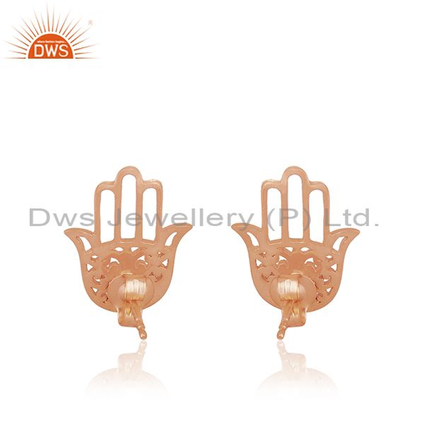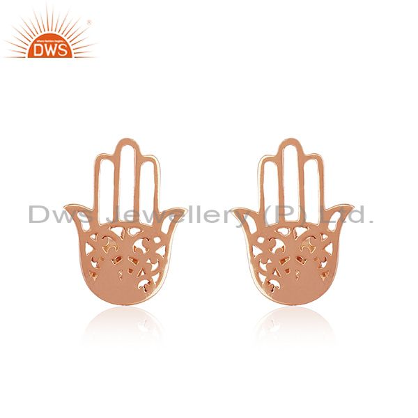 Rose Gold Plated Sterling Silver Hamsa Hand Stud Earrings Manufacturer