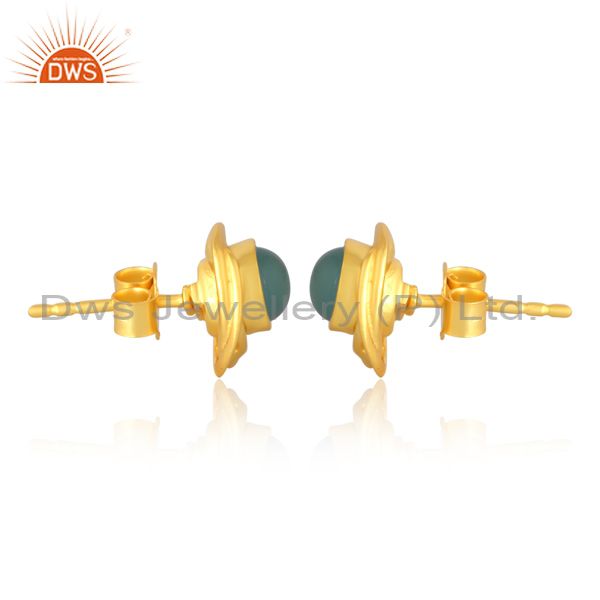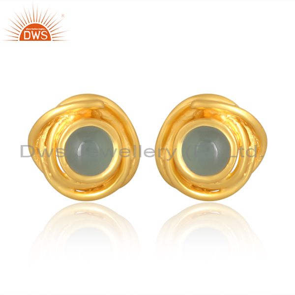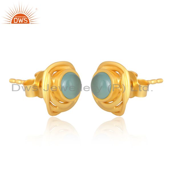 Rose Model Stud With Aqua Chalcedony Women In Silver Metal