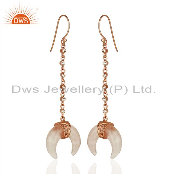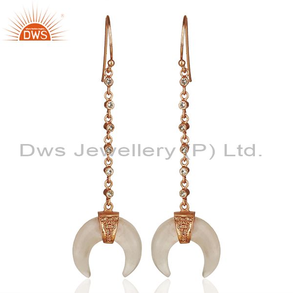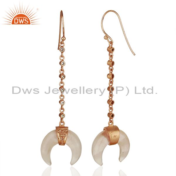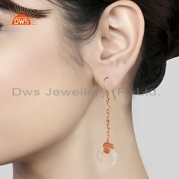Rose Quartz Crescent Moon 925 Sterling Silver Rose Gold Plated Dangle Earring