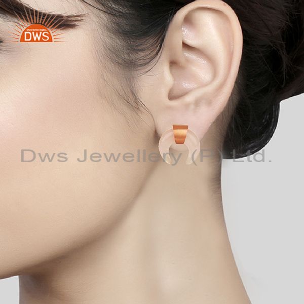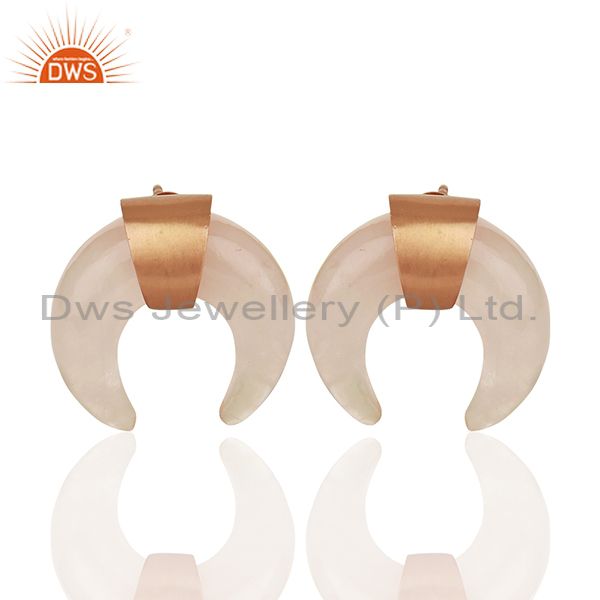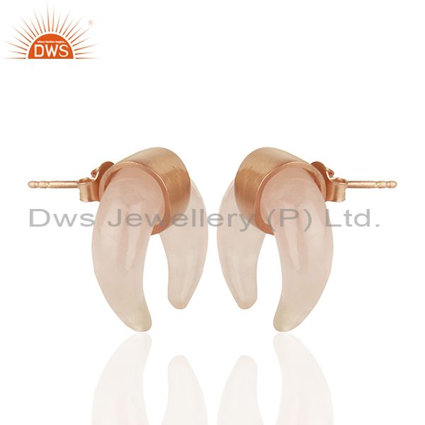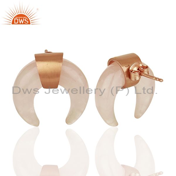 Rose Quartz Crescent Moon 925 Sterling Silver Rose Gold Plated Studs Earring