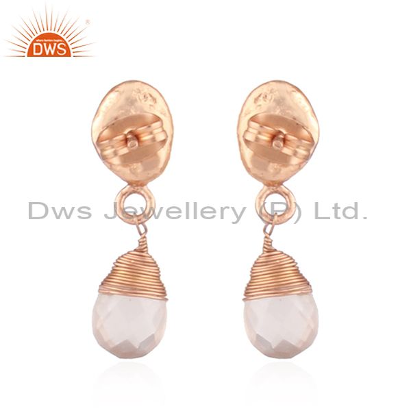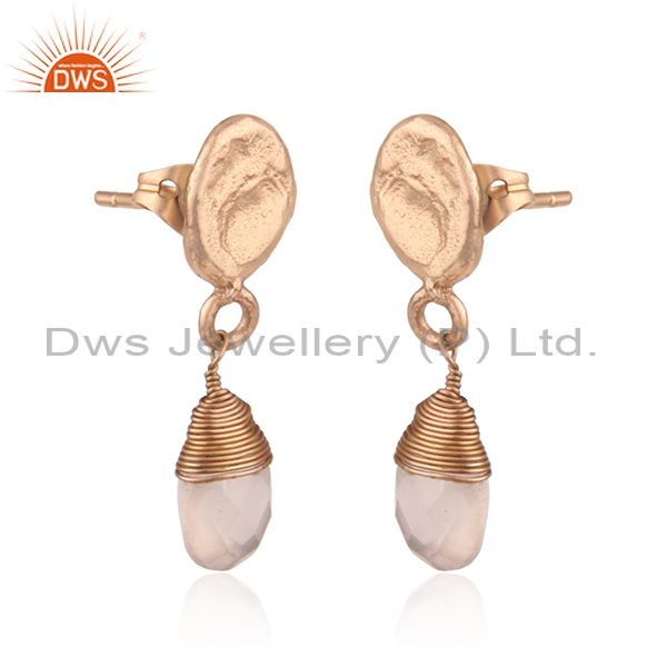 Rose Quartz Gemstone Rose Gold Plated Drop Fashion Earrings Jewelry
