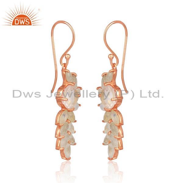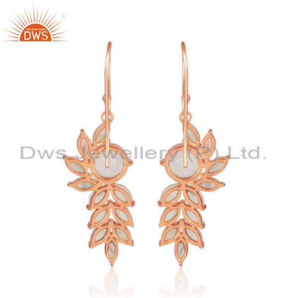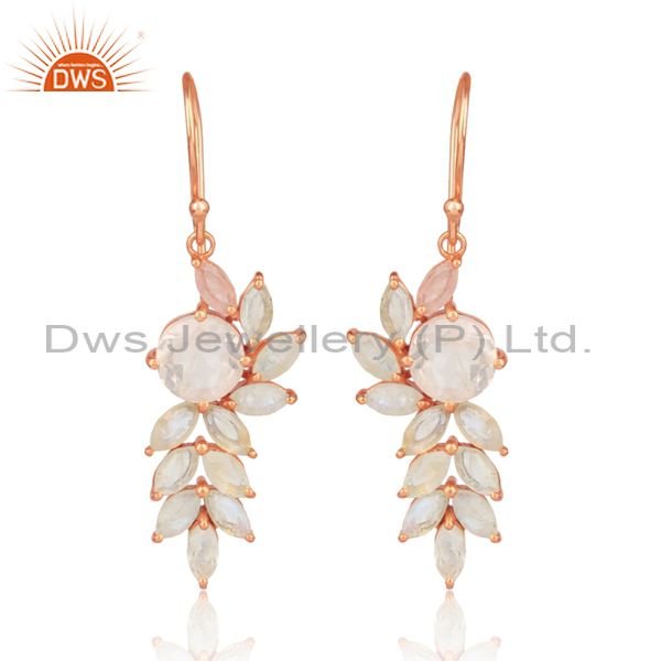 Rose Quartz Rose Plated Silver Floral Ear Wire Drop Earrings