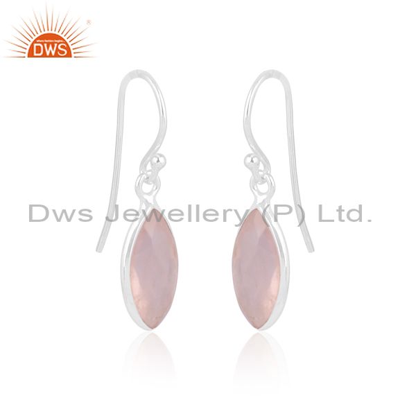 Rose Quartz Set Fine 925 Silver Classic Designer Earrings