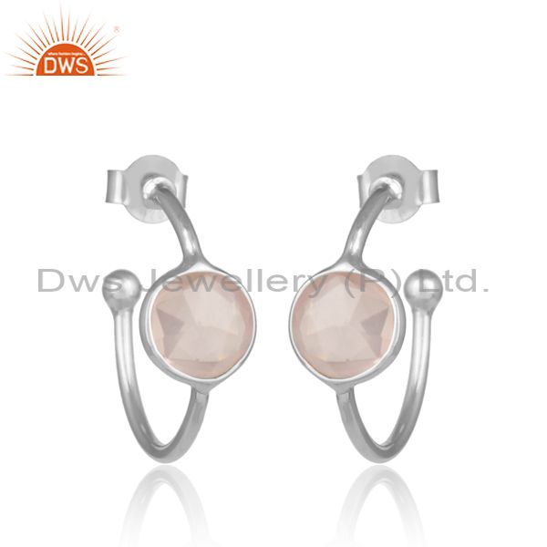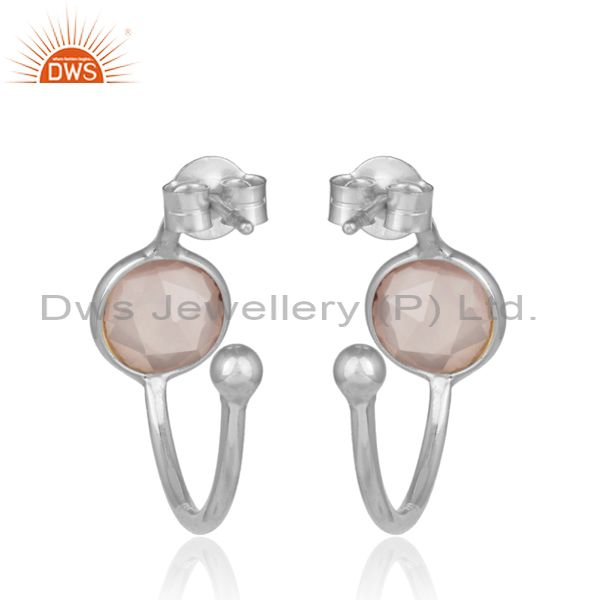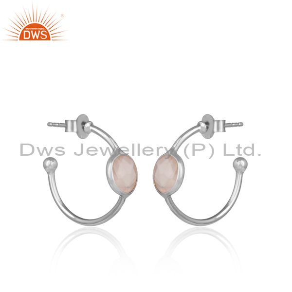 Rose Quartz Set Fine 925 Sterling Silver Open Hoop Earrings