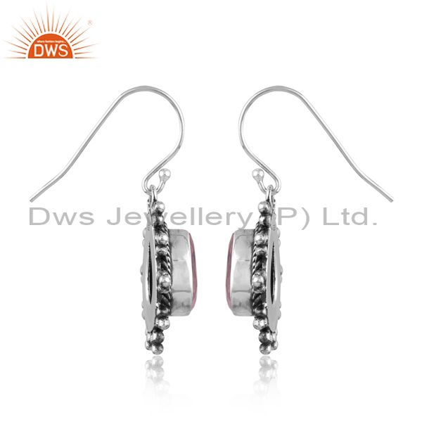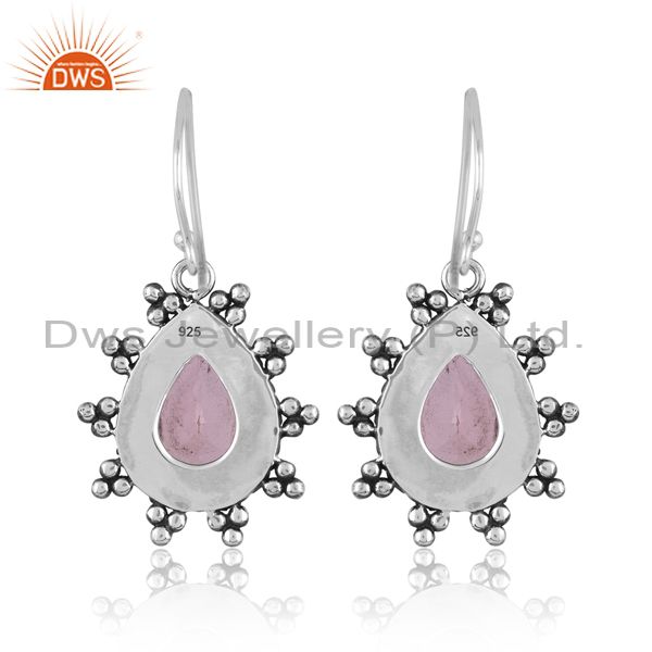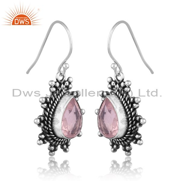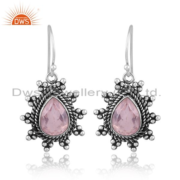 Rose Quartz Set Oxide Sterling Silver Classic Boho Earrings