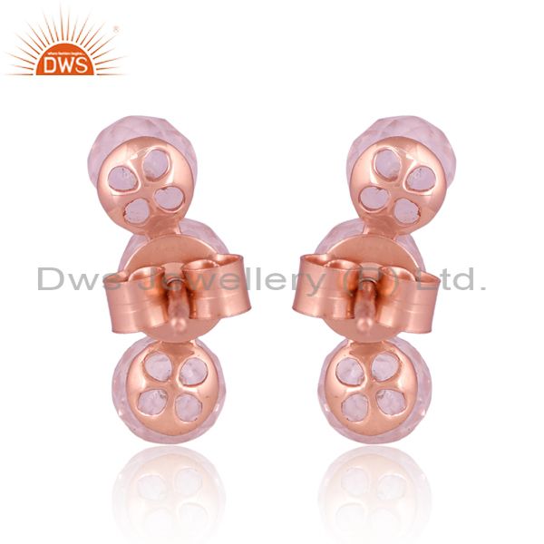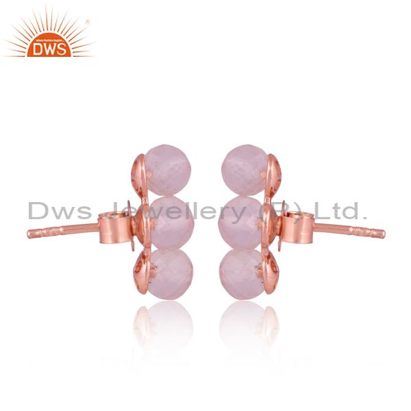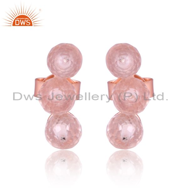 Rose Quartz Set Rose Gold On 925 Silver Long Drop Earrings