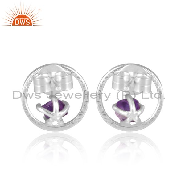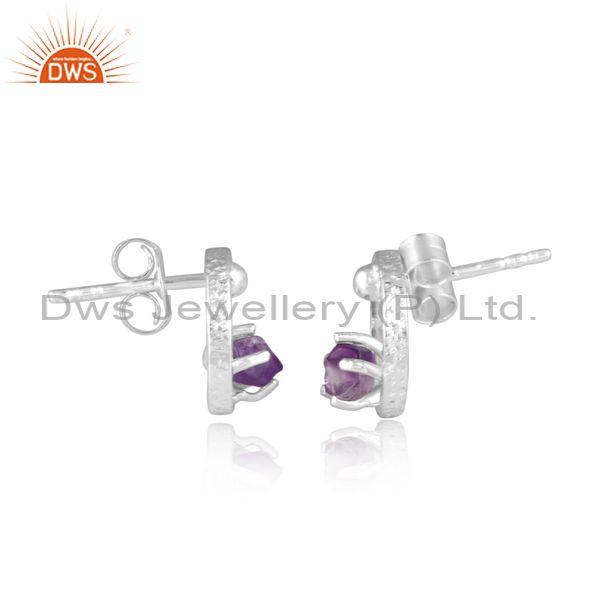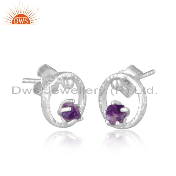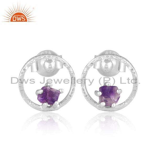 Rough Cut Amethyst Set Fine Silver Round Handmade Earrings
