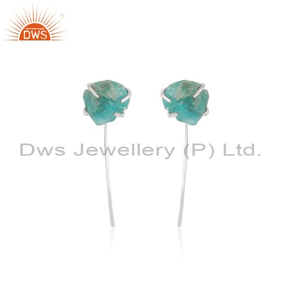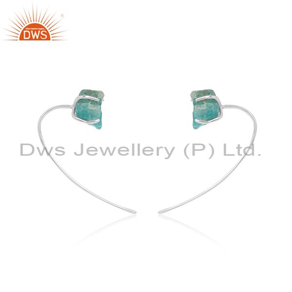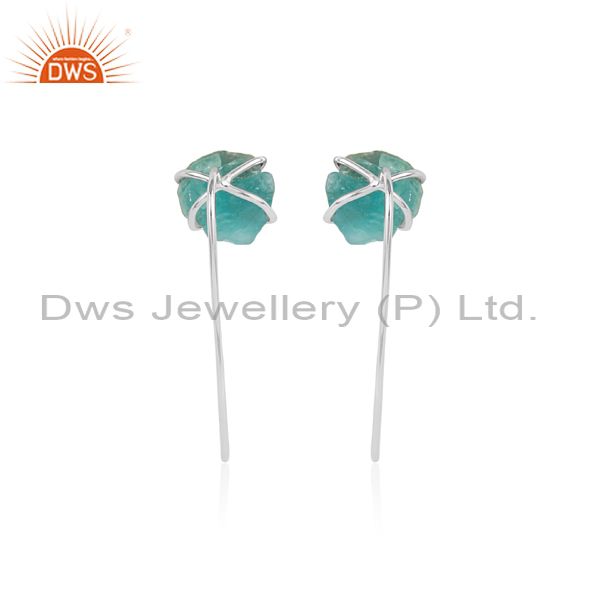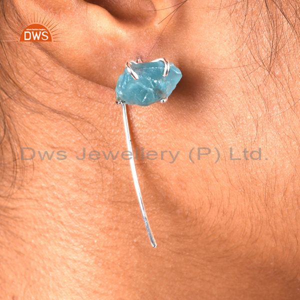 Rough Cut Apatite Set Fine Silver Classic Designer Earrings