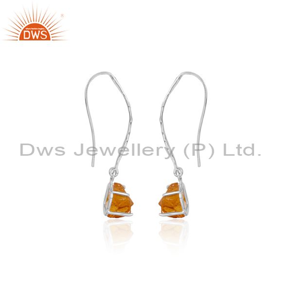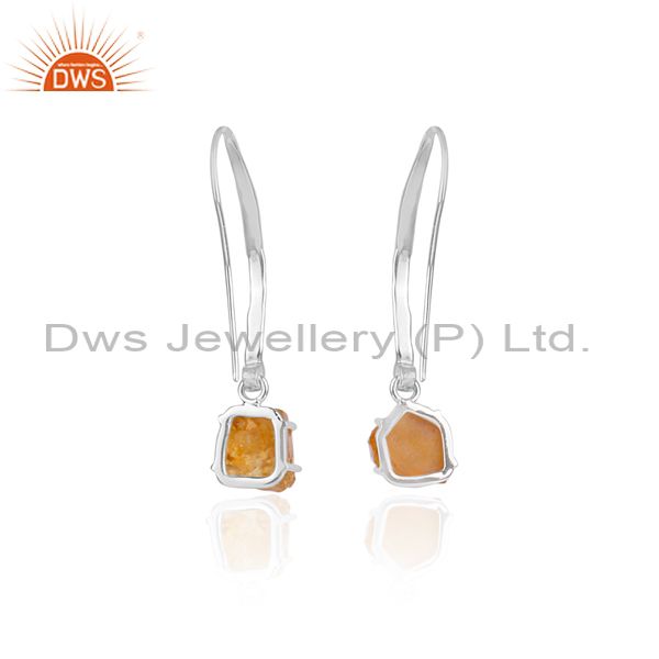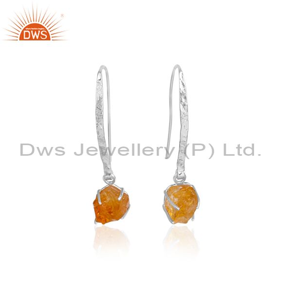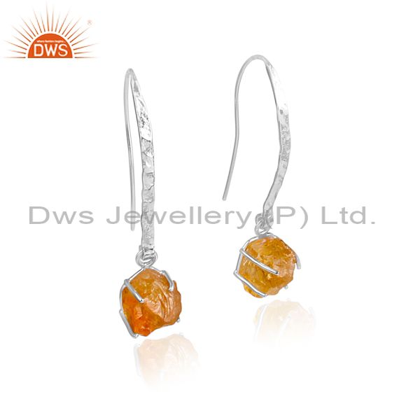 Rough Cut Citrine Set Fine Silver Classic Designer Earrings