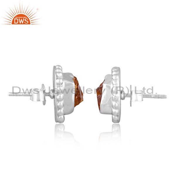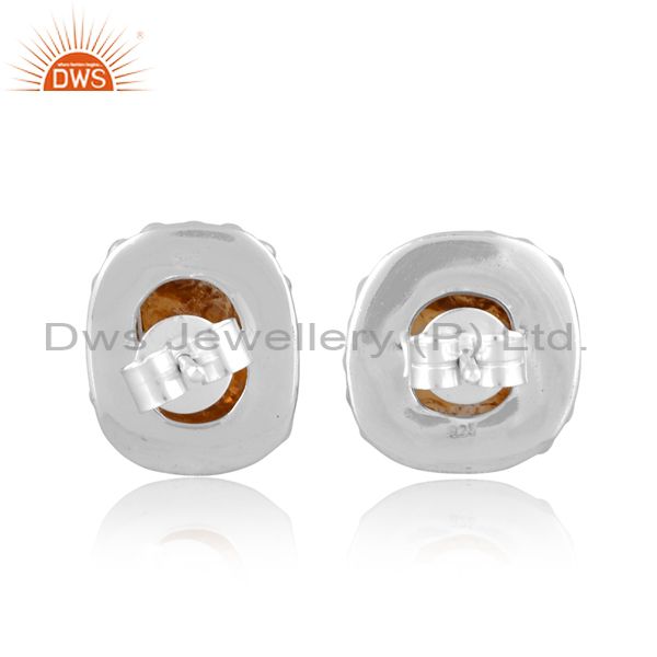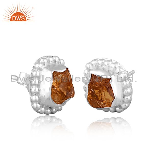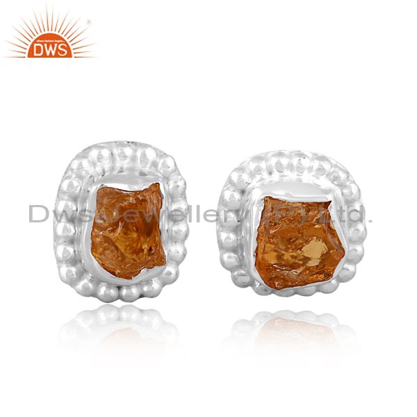 Rough Cut Citrine Set Fine Sterling Silver Designer Earrings
