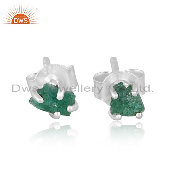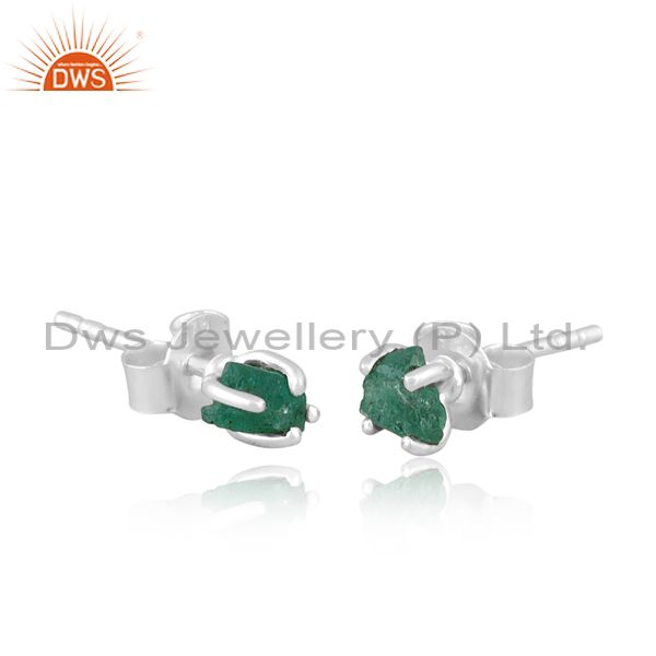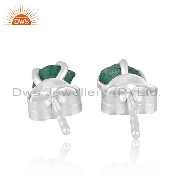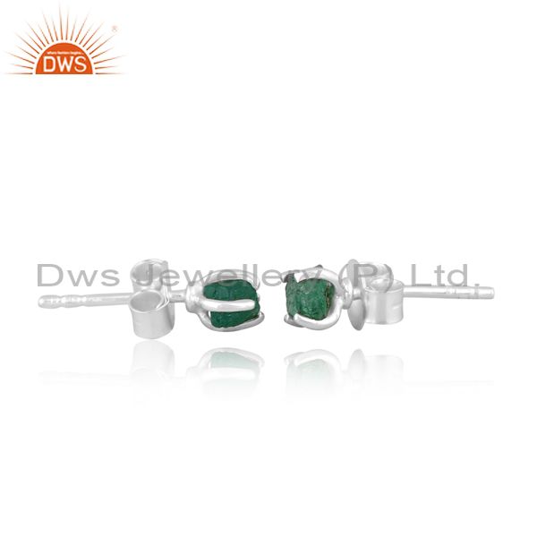 Rough Cut Emerald Set Fine Sterling Silver Fancy Earrings