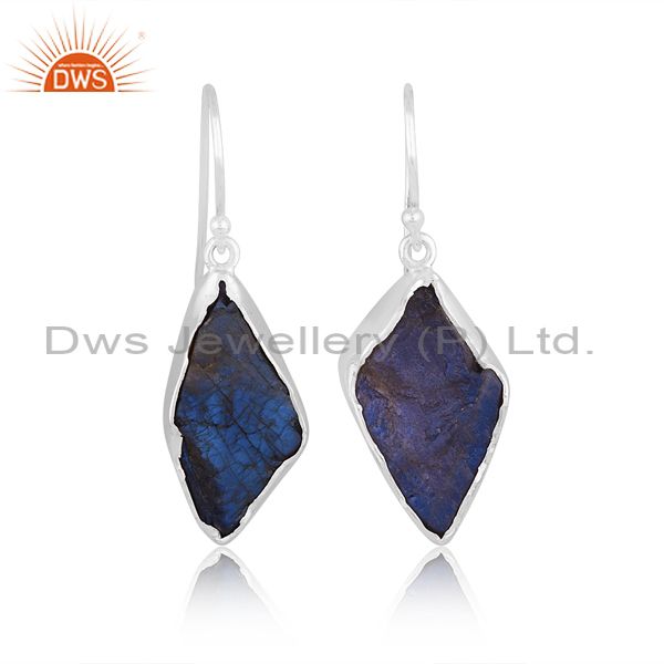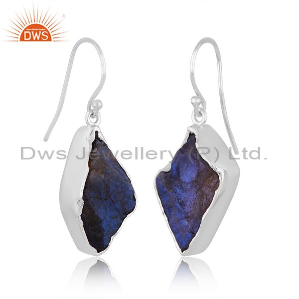 Rough Cut Labradorite Set Fine 925 Silver Earwire Earrings