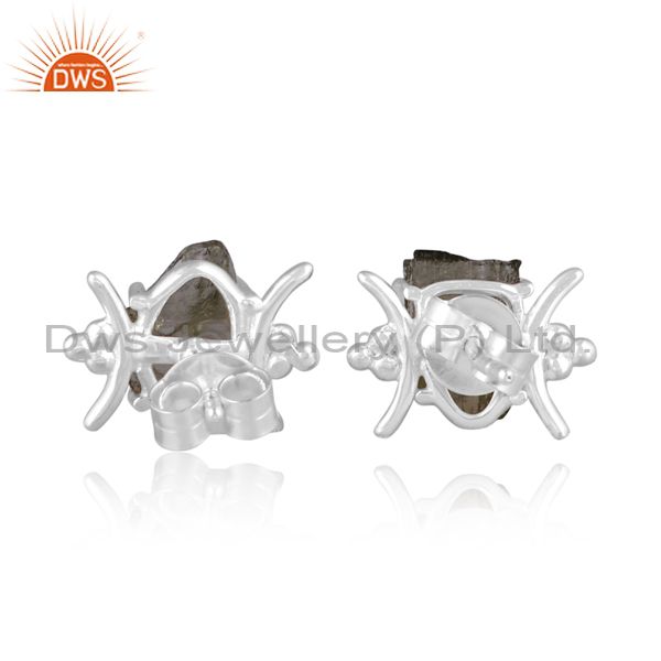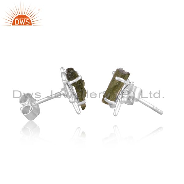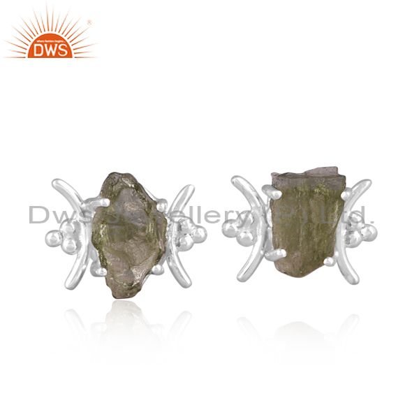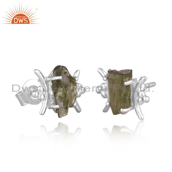 Rough Cut Moldavite Set Fine 925 Sterling Silver Earrings