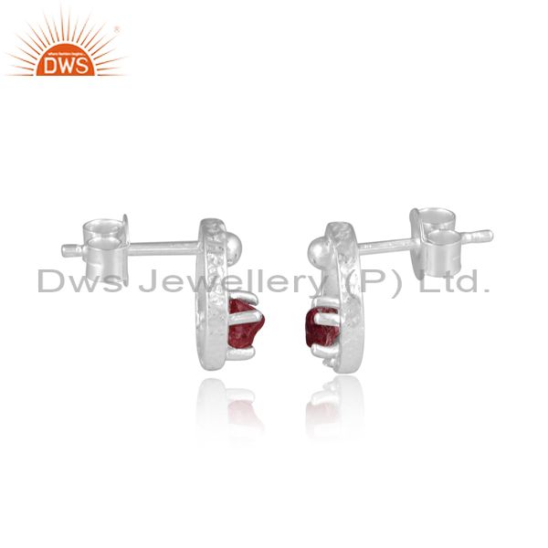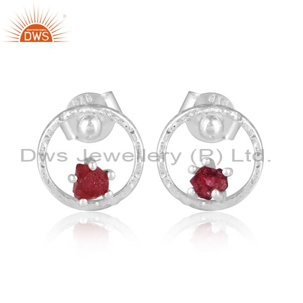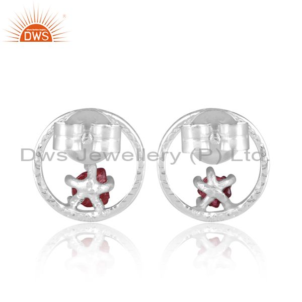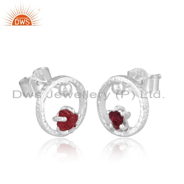 Rough Cut Spine Ruby Set Fine Silver Round Handmade Earrings