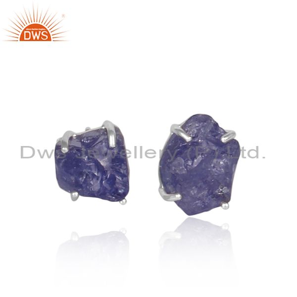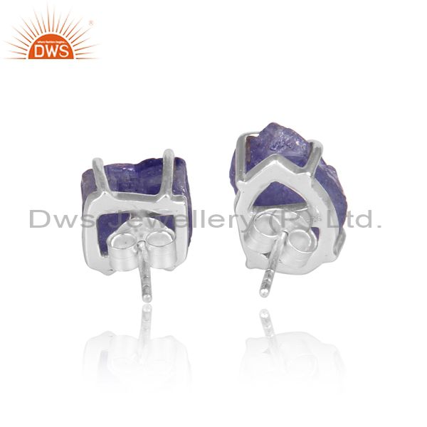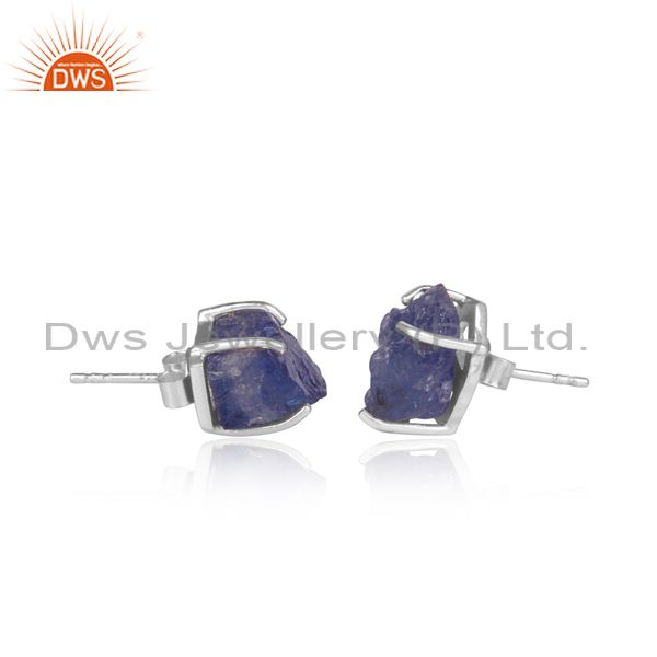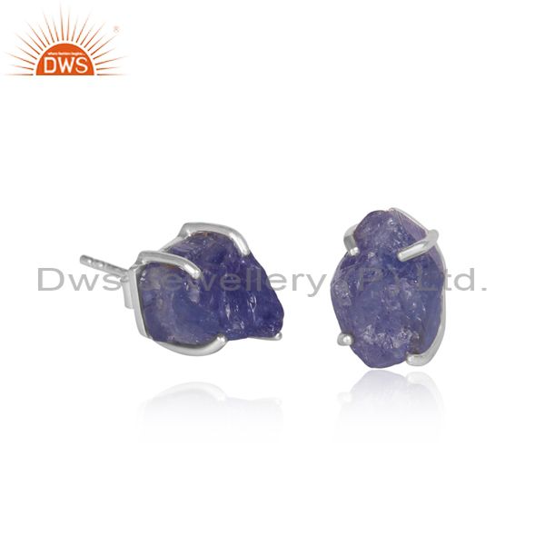 Rough Cut Tanzanite Set Fine 925 Silver Abstract Earrings