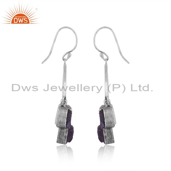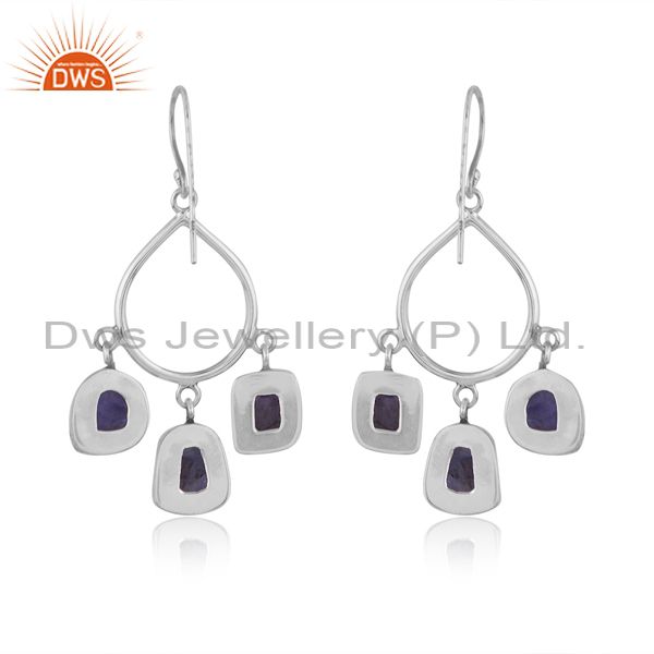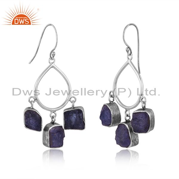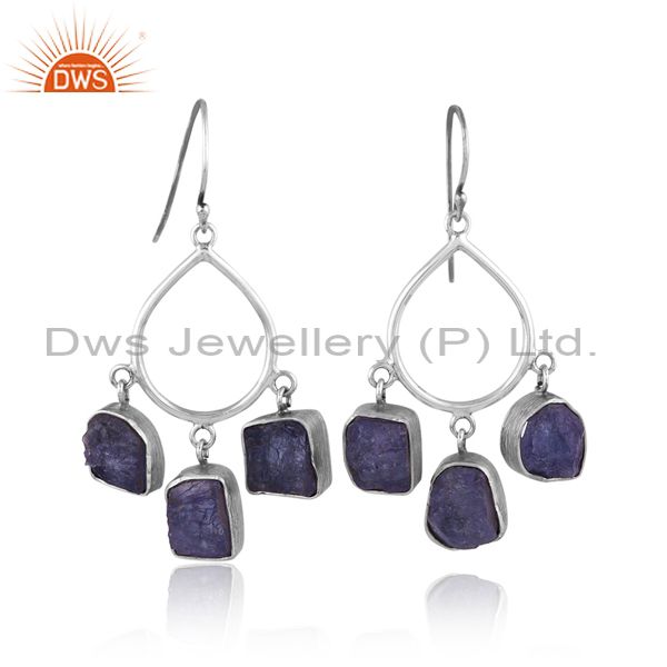 Rough Cut Tanzanite Set Oxidized Silver Chandelier Earrings