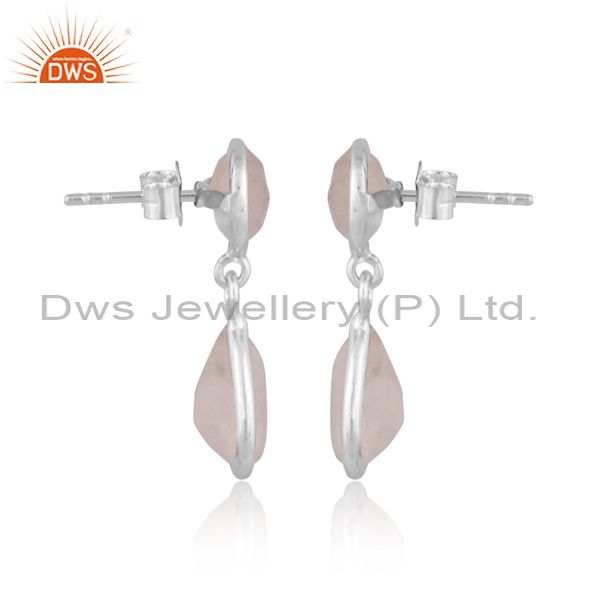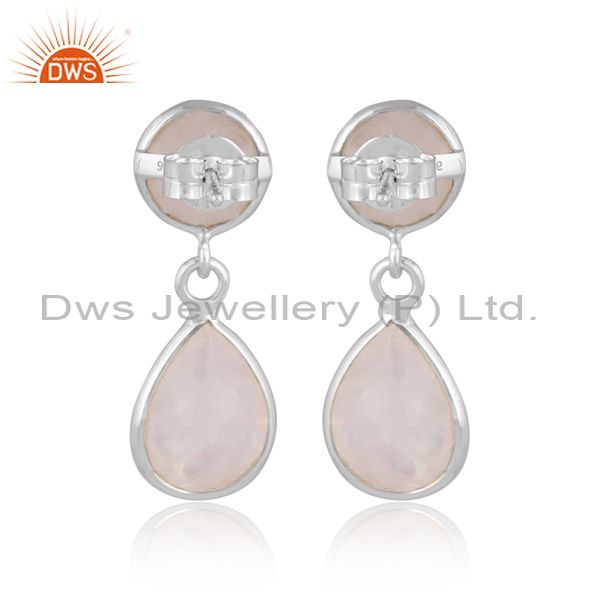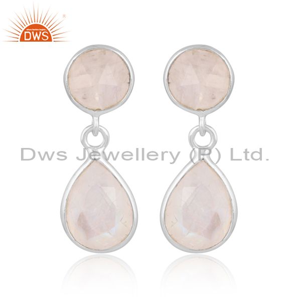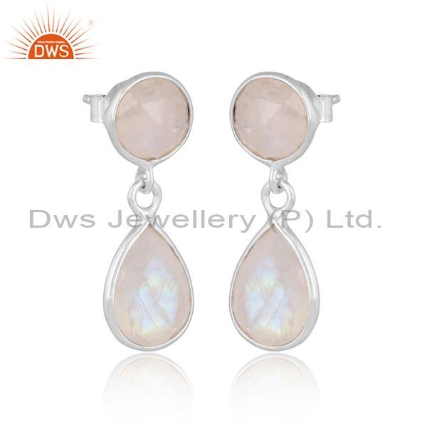 Round And Pear Cut Rainbow Moon Stone Fine Silver Earrings