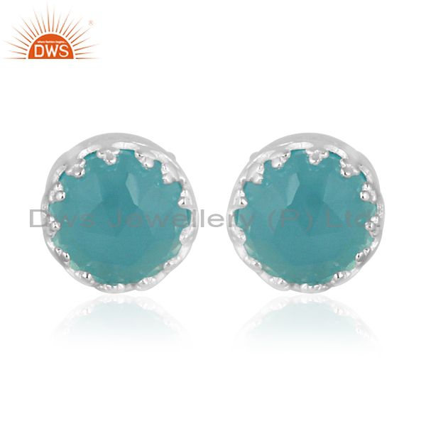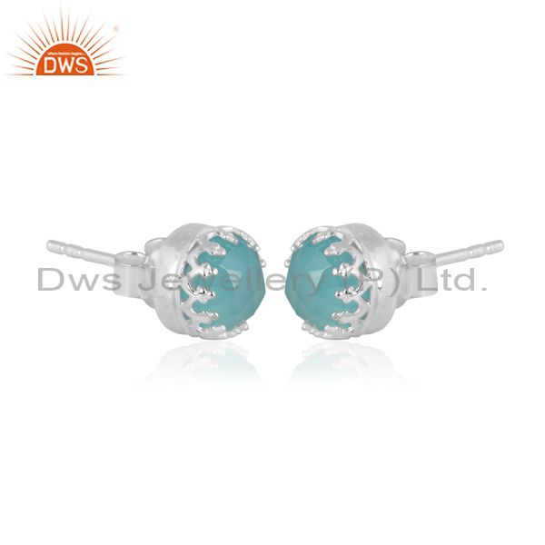 Round Aqua Chalcedony Set Fine 925 Sterling Silver Earrings