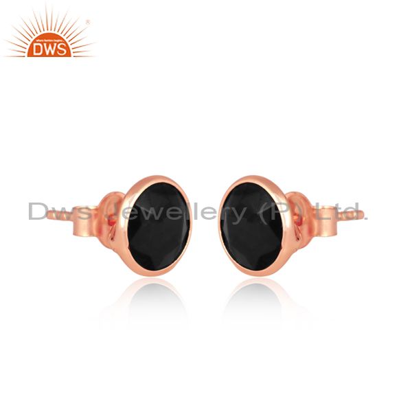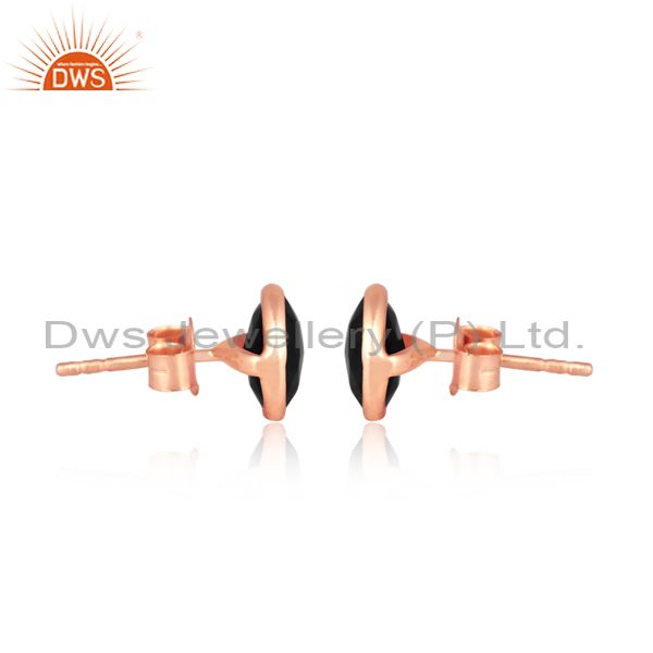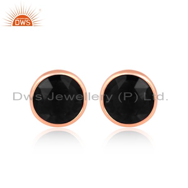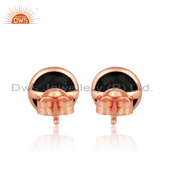 Round Black Onyx Set Rose Gold On 925 Silver Designer Ring