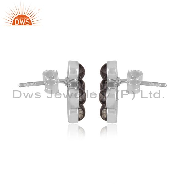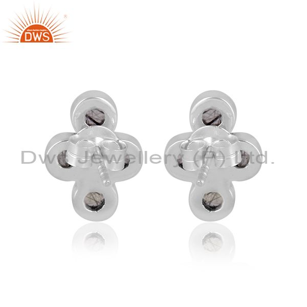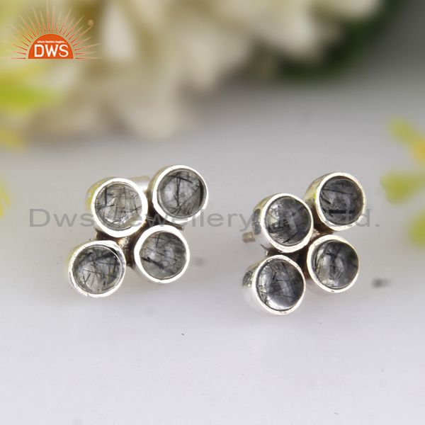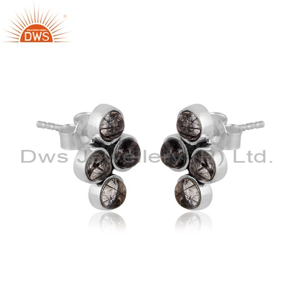 Round Black Rutile Set 925 Oxidized Silver Design Earrings