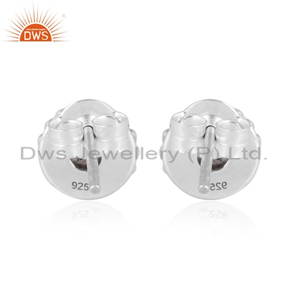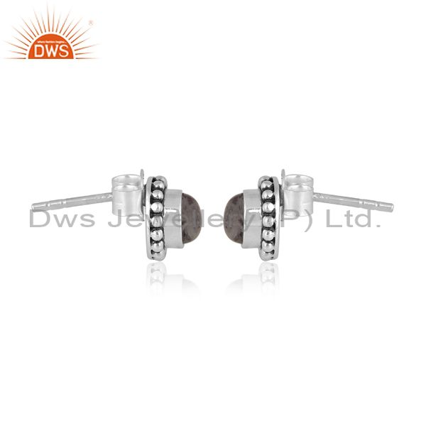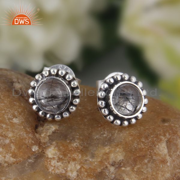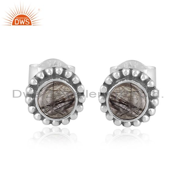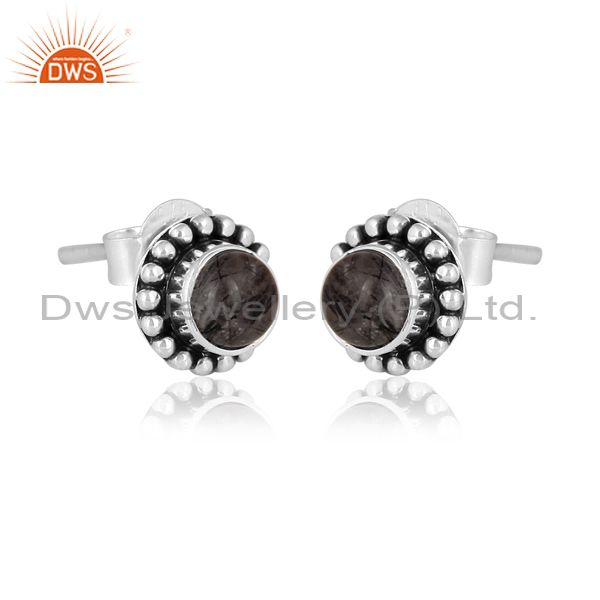 Round Black Rutile Set Oxidized 925 Silver Classic Earrings