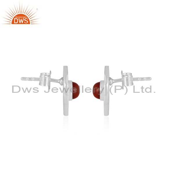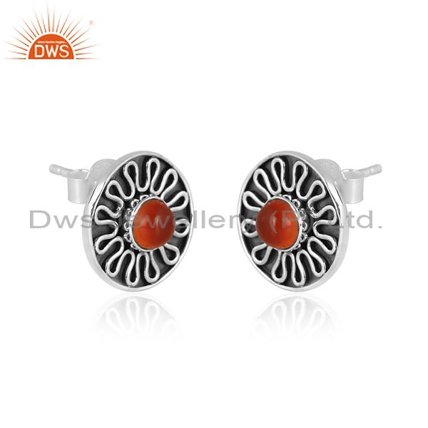 Round Carnelian Set Oxidized Silver Ethnic Design Earrings