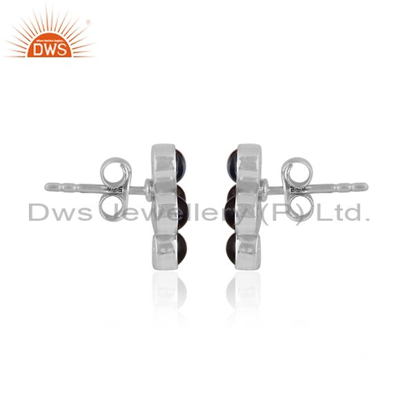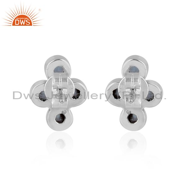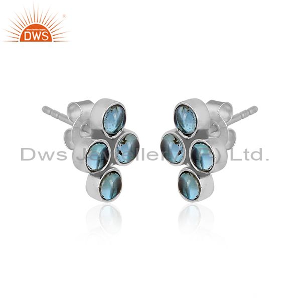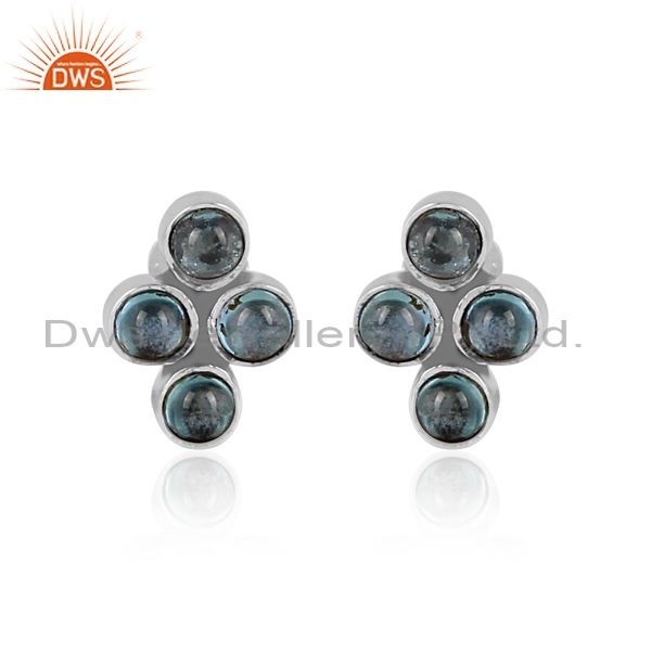 Round Cut Blue Topaz Set Oxidized Silver Statement Earrings
