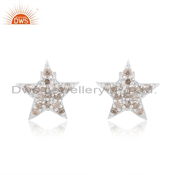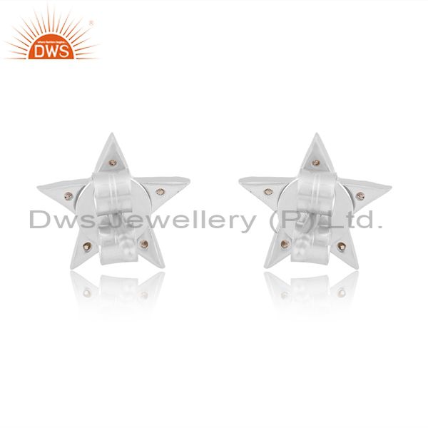 Round Cut Diamond Set Fine 925 Silver Star Shaped Earrings
