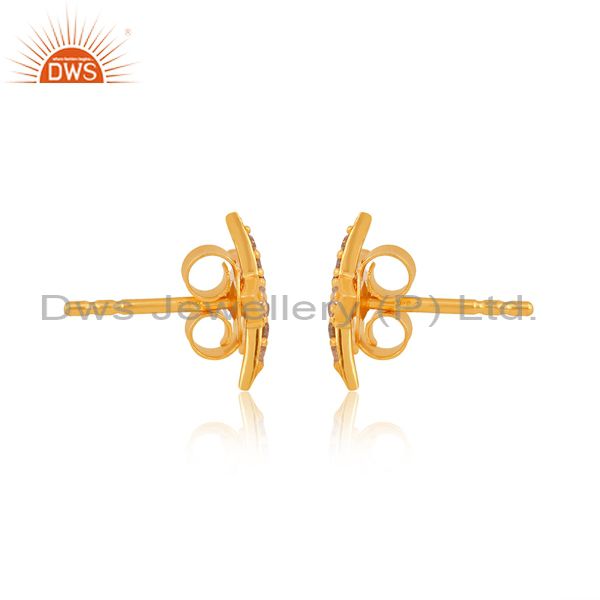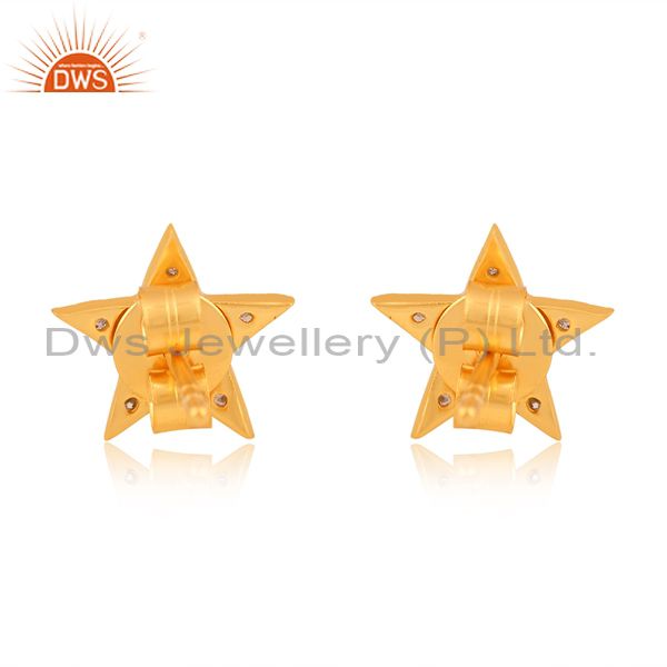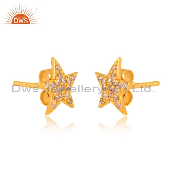 Round Cut Diamond Set Gold On Sterling Silver Star Earrings