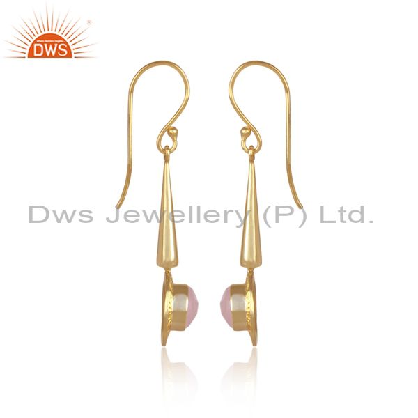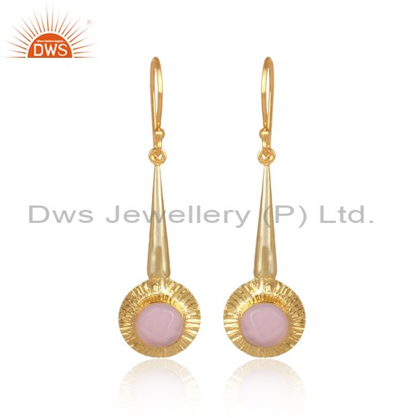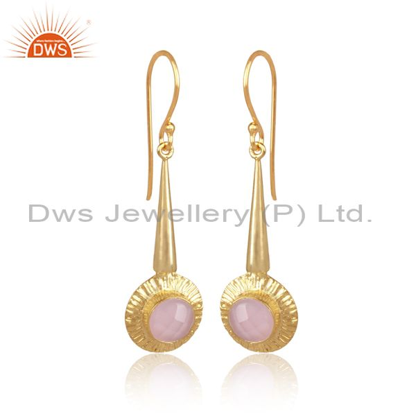 Round Cut Glass Rose Set Classic Brass Gold Earwire Earrings