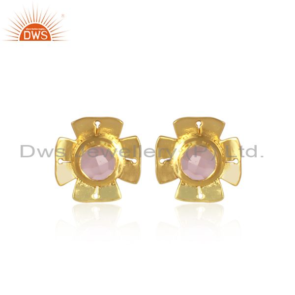 Round Cut Glass Rose Set Classy Designer Brass Gold Earrings