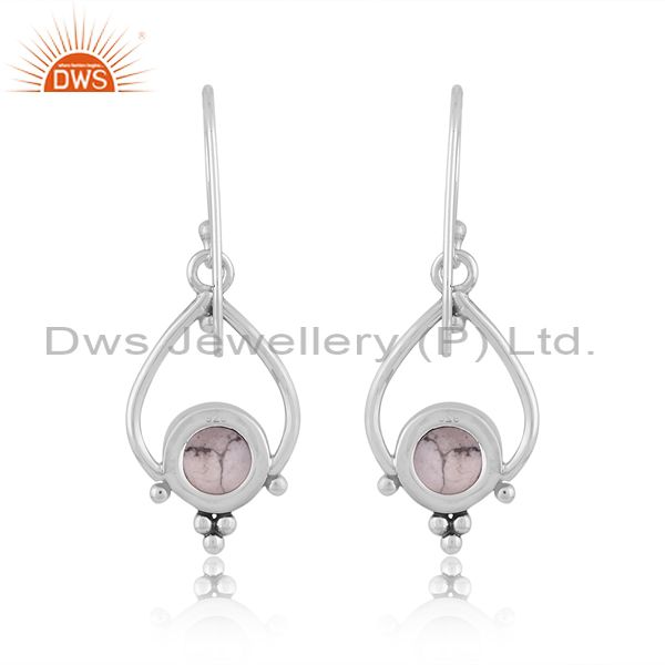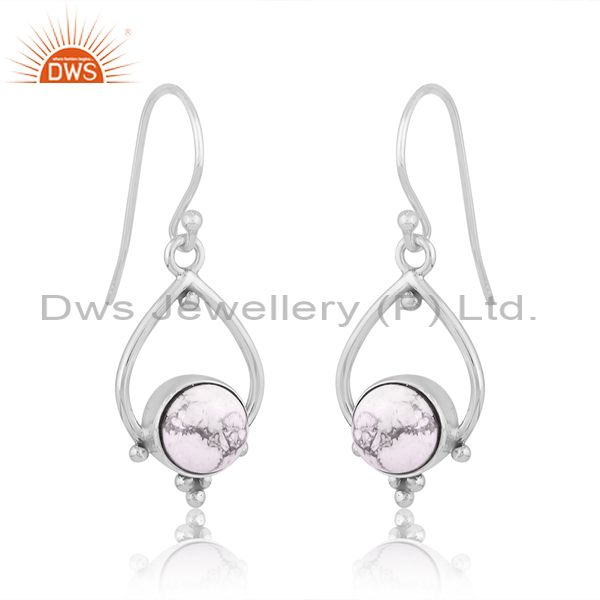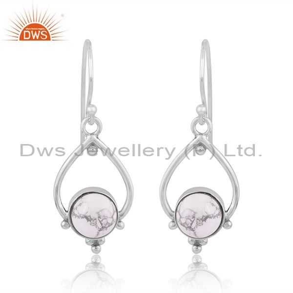 Round Cut Howlite Set Oxidized 925 Sterling Silver Earrings