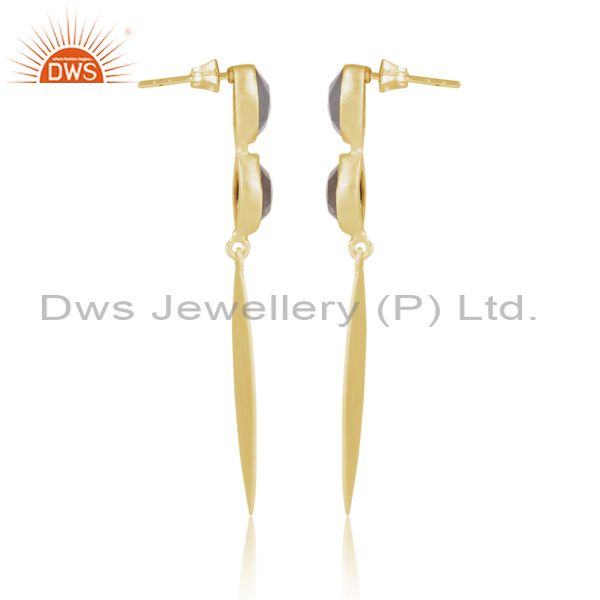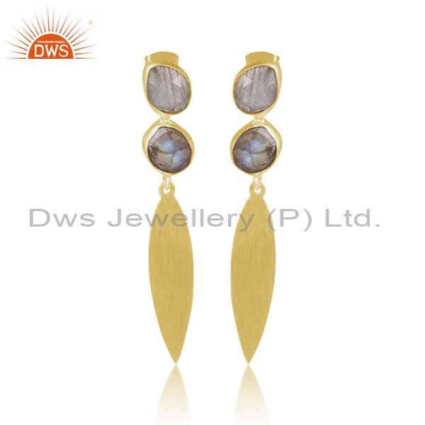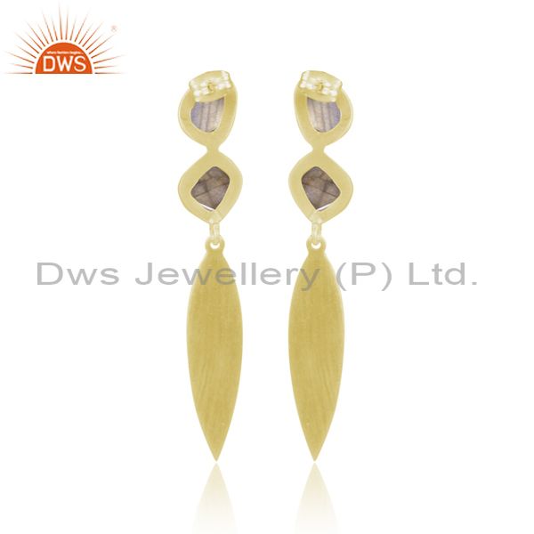 Round Cut Labradorite Set Brass Gold Long Designer Earrings