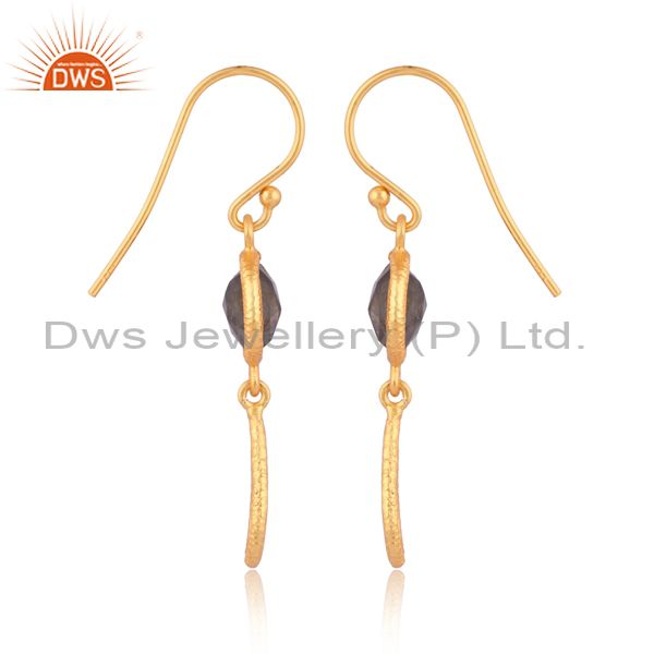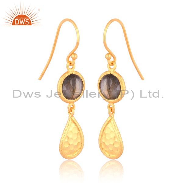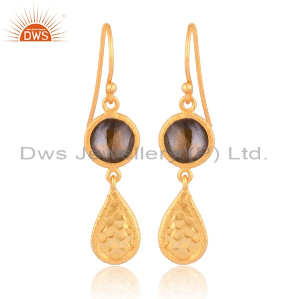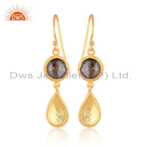 Round Cut Labradorite Set Gold On Sterling Silver Earrings